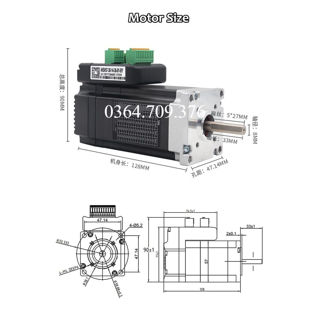JMC động cơ servo AC tích hợp 57mm 36VDC 0,45nm 3000rpm & bộ encoder 140W 1000 cho máy in phun Bộ máy CNC chính hãng mới