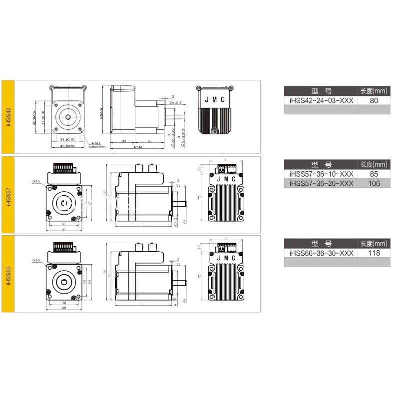 JMC nema24 3nm trong tích hợp vòng khép kín động cơ bước với bộ điều khiển 36VDC iHSS60-36-30
