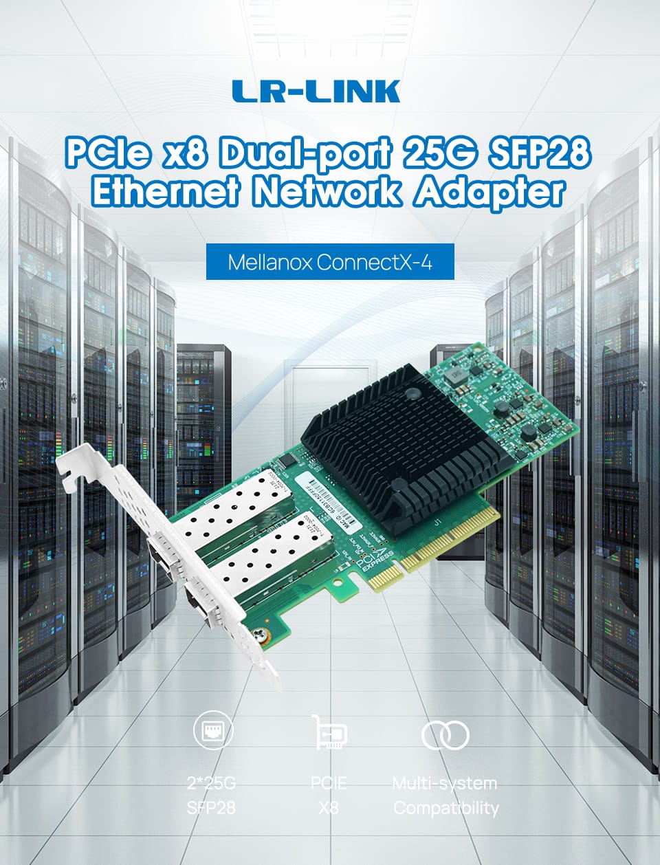 LR-LINK 1026pf-2sfp28 PCIe X8 Dual-Port 25 gam Card mạng sfp28 Ethernet Adapter Mạng dựa trên mellanox chip ConnectX-4