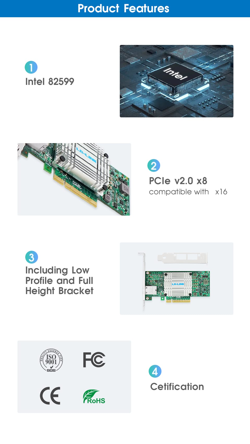 LR-LINK 6801bt 10GB Nic thẻ Ethernet Card mạng PCI Express x8 Network Adapter LAN máy chủ thẻ Intel 82599