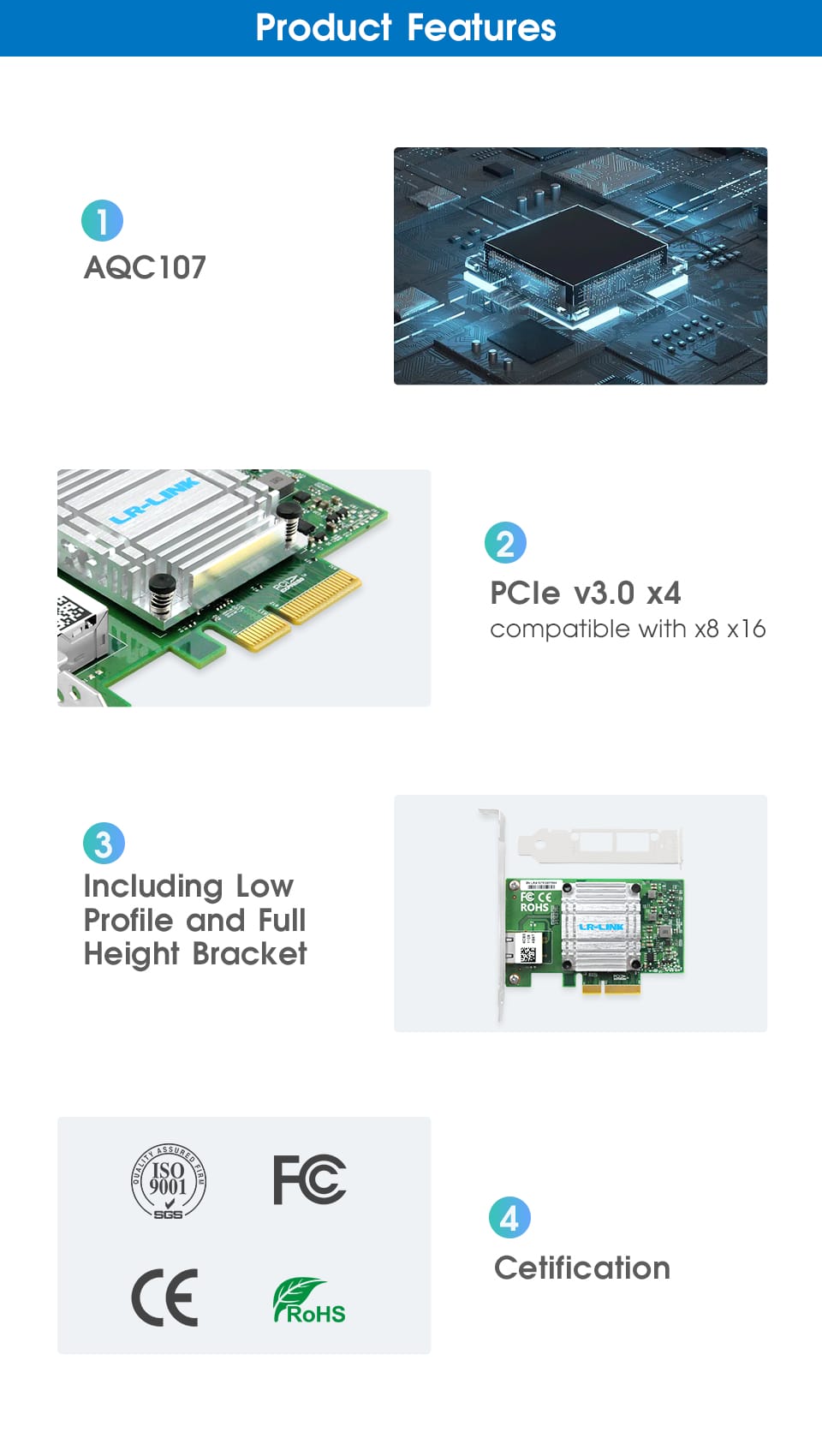 LR-LINK 6880bt 5-tốc độ 10GB Ethernet Card mạng BASE-T pciex4 Đồng RJ45 dựa trên aqc107 Chipset cấu hình thấp khung bao gồm