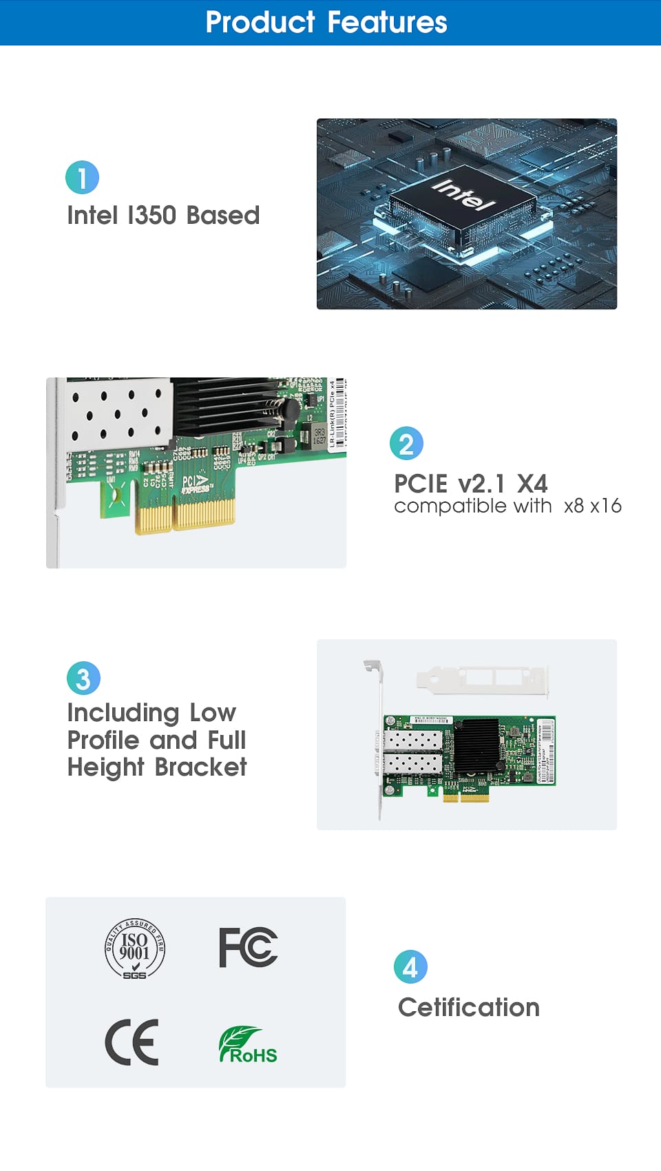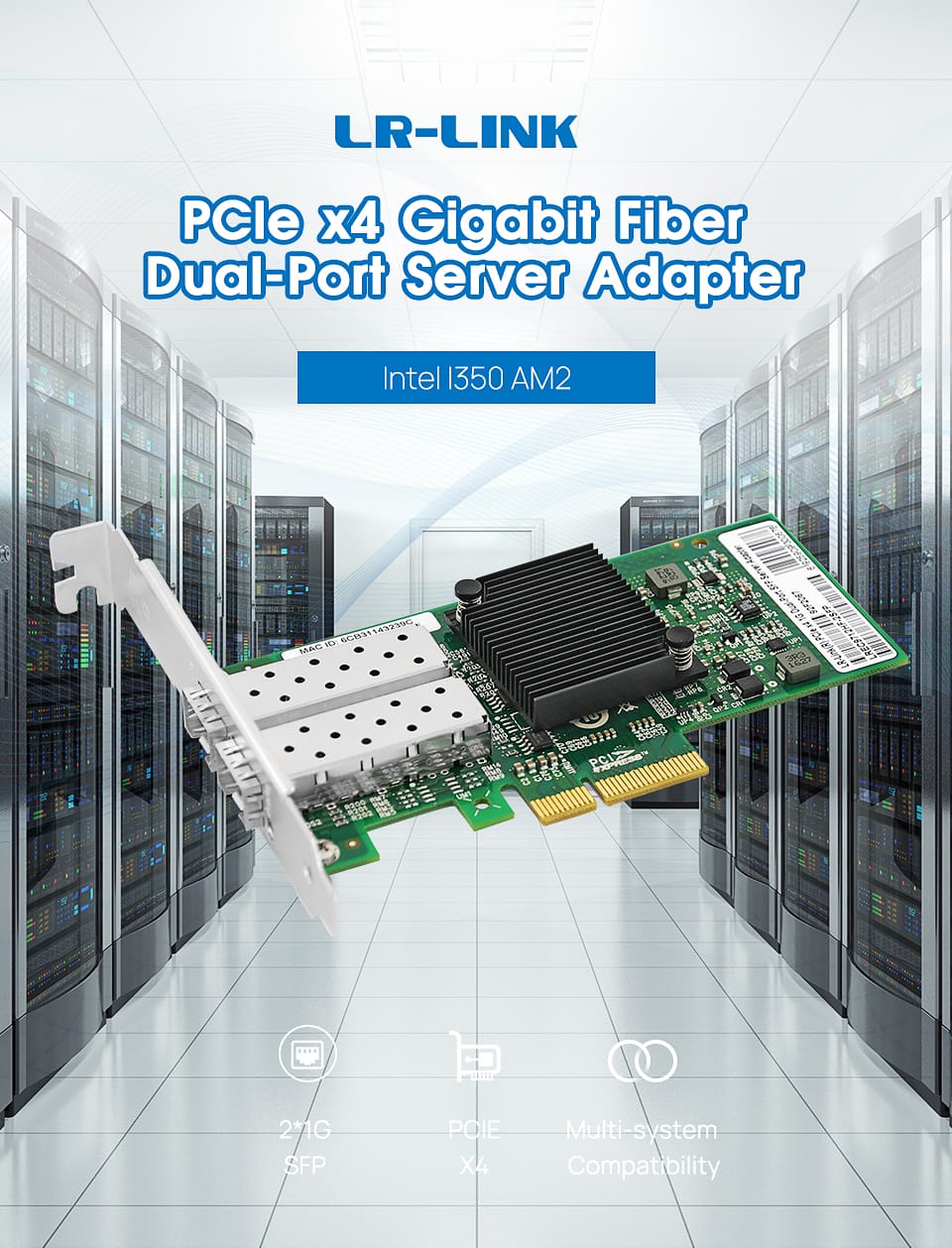LR-LINK 9712hf-2sfp Dual-Port Gigabit Ethernet sợi quang Lan card mạng 1GB PCI-E Network Adapter Intel I350-F2 tương thích