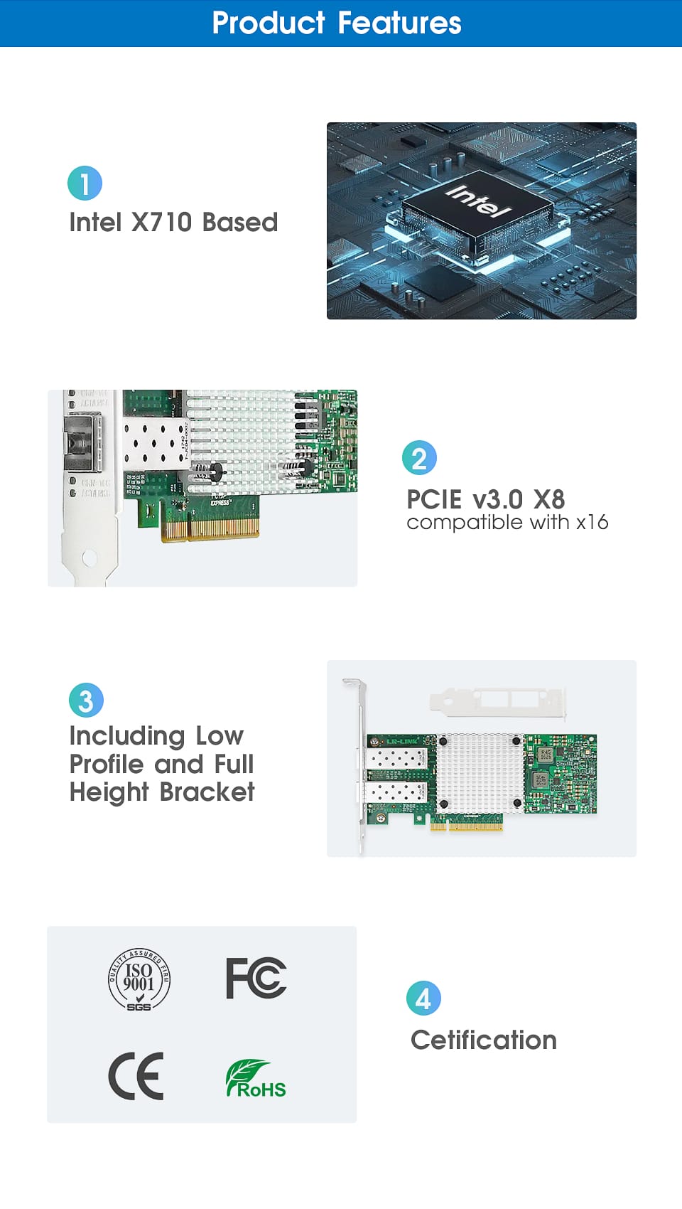 LR-LINK 9812bf-2sfp 10GB Card mạng cổng kép PCIe sợi quang LAN Ethernet Network Adapter Nic dựa trên Intel X710-DA2