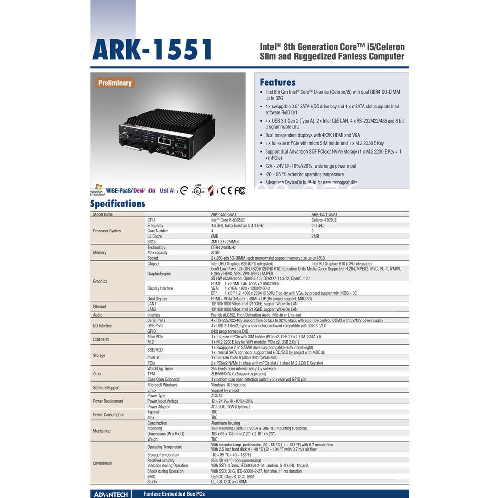 Mô hình: ARK-1551-U0A1,ARK-1551-S6A1,ARK-1551-S6A1/4G/500G,ARK-1551-S6A1/4G/SSD128 G,ARK-1551-S6A1/8G/500G,ARK-1551/I3-8145UE/8G/128G