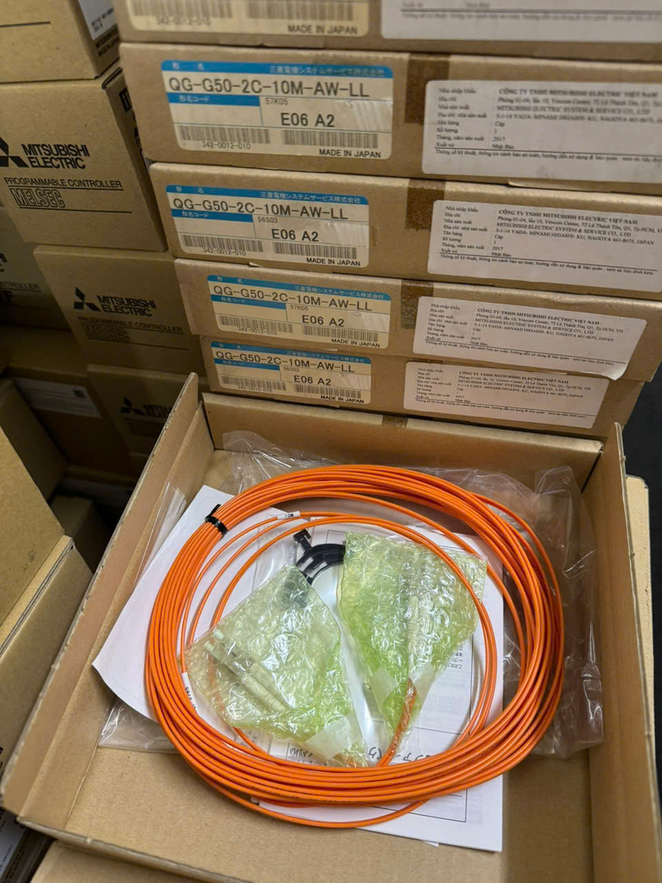MITSUBISHI QG-G50-2C-10M-AW-LL Thông số kỹ thuật chính • Mã sản phẩm: QG-G50-2C-10M-AW-LL • Chiều dài: 10 mét • Sợi quang: 2 lõi, đa mode (GI) • Đường kính lõi/vỏ: 50/125 µm • Đầu nối: LCF (LC Duplex) • Chuẩn mạng hỗ trợ: CC-Link IE Control • Thương hiệu: Mitsubishi • Xuất xứ: Nhật Bản Model cùng loại: QG-G50-2C-2M-AW-LL, QG-G50-2C-4M-AW-LL, QG-G50-2C-6M-AW-LL, QG-G50-2C-7M-AW-LL, QG-G50-2C-10M-AW-LL, QG-G50-2C-11M-AW-LL, QG-G50-2C-12M-AW-LL, QG-G50-2C-13M-AW-LL, QG-G50-2C-14M-AW-LL, QG-G50-2C-15M-AW-LL, QG-G50-2C-16M-AW-LL, QG-G50-2C-17M-AW-LL, QG-G50-2C-18M-AW-LL, QG-G50-2C-19M-AW-LL, QG-G50-2C-20M-AW-LL, QG-G50-2C-21M-AW-LL, QG-G50-2C-22M-AW-LL, QG-G50-2C-25M-AW-LL, QG-G50-2C-26M-AW-LL, QG-G50-2C-27M-AW-LL, QG-G50-2C-28M-AW-LL, QG-G50-2C-29M-AW-LL, QG-G50-2C-30M-AW-LL, QG-G50-2C-31M-AW-LL, QG-G50-2C-32M-AW-LL, QG-G50-2C-33M-AW-LL, QG-G50-2C-34M-AW-LL, QG-G50-2C-35M-AW-LL, Xem tiếp…